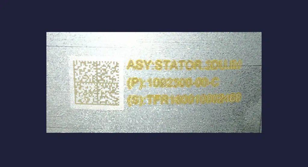 Der Kunde wollte auf dem Aluminium-Kurbelgehäuse eines Motors mittels Lasertechnologie einen alphanumerischen Code markieren, wobei die Laserbeschriftung eine Tiefe von 0,1 bis 0,2 mm aufweisen soll und die Zykluszeit relativ kurz ist.