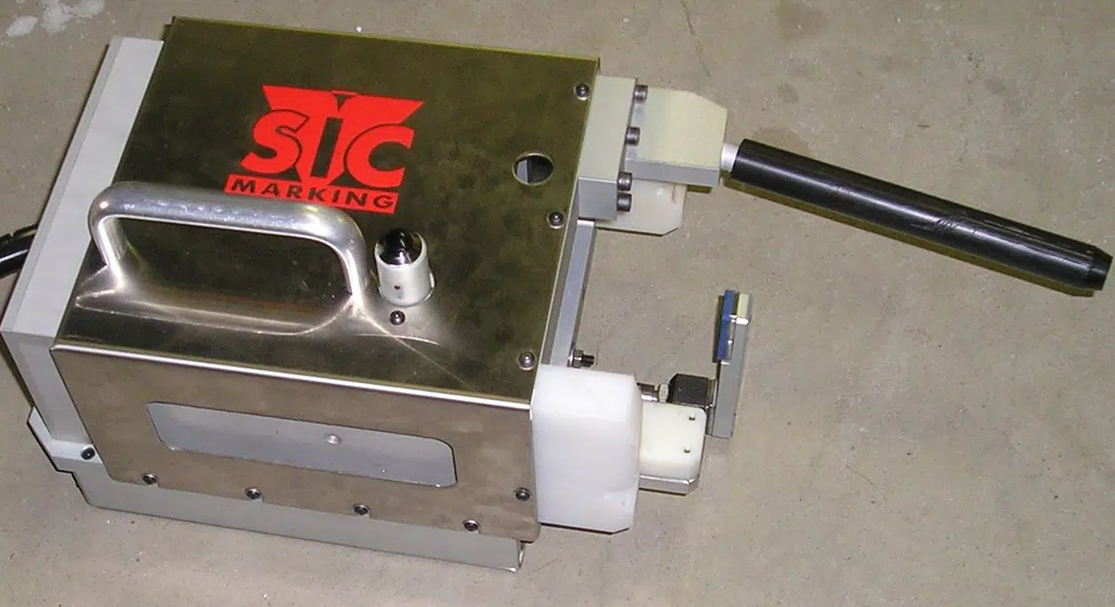 Für den vorliegenden Fall wurde eine Werkzeugserie entwickelt, die sich auf die Markierpistole P123 aufsetzen lässt.. SIC MARKING stellte für den Kunden eine Sonderanfertigung mit