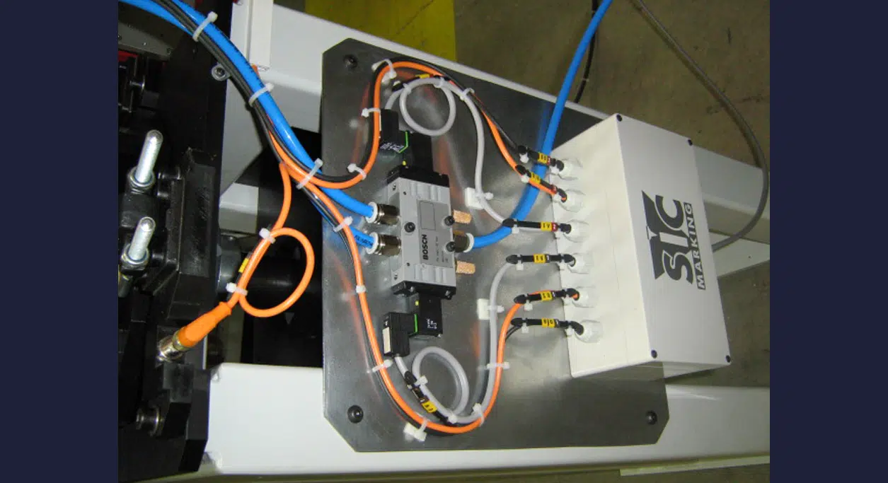 SIC MARKING entwickelte eine Spezialmaschine und stattete den Markierkopf mit einem großen Markierfenster aus, der Düse i143.
