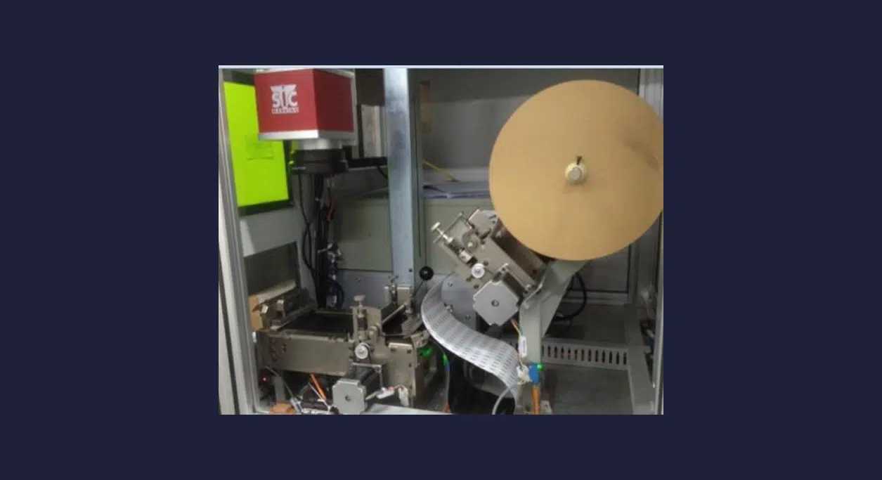 Die Markierstation zur Laserbeschriftung der Klebeetiketten sollte eine Kunststofffolie beschriften und diese anschließend zuschneiden können.