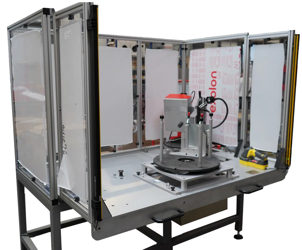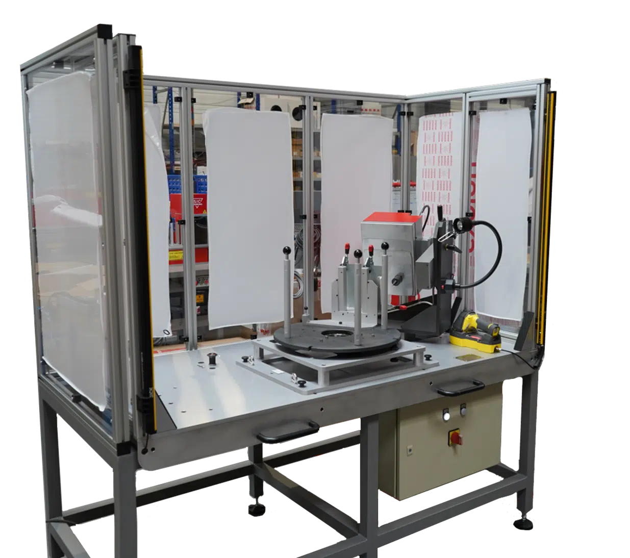 Um den spezifischen Bedürfnissen des Kunden gerecht zu werden, entwickelte das Team von SIC Marking eine manuelle Station mit 2 Positionen. Sie besteht aus