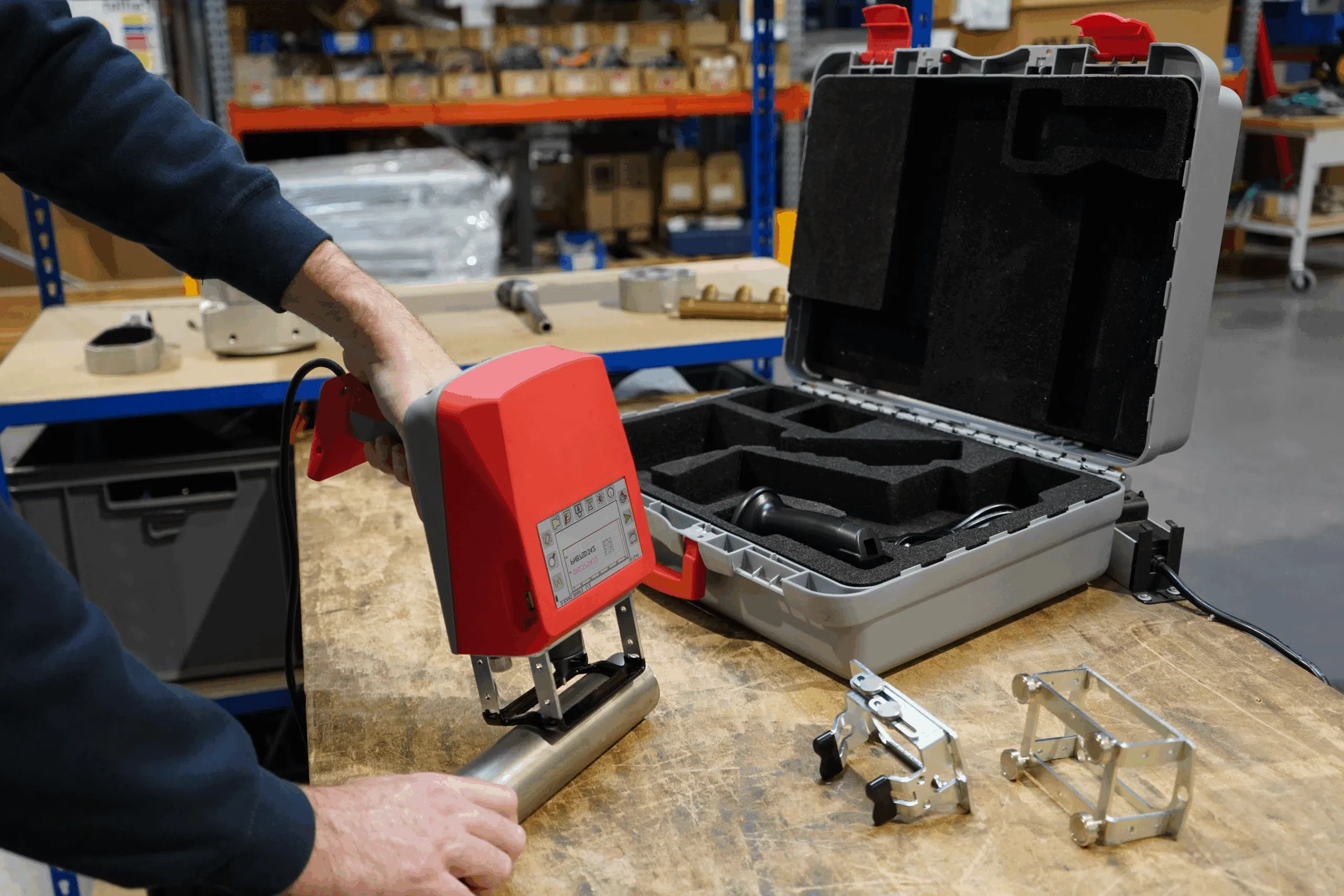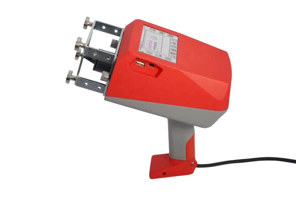 Das Nadelmarkiergerät verfügt über drei werkzeuglos wechselbare Frontplatten, die sich flexibel an unterschiedliche Bauteilgeometrien und industrielle Umgebungen anpassen lassen.