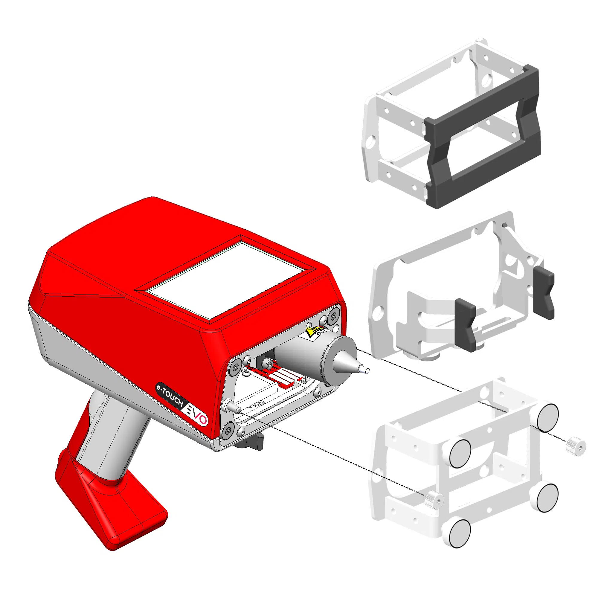Die e-TOUCH EVO ist ein tragbares All-in-One-Nadelmarkiersystem mit Touchscreen. Sie überzeugt durch ihr kompaktes Design, ihr geringes Gewicht von nur 1,9 kg und ein besonders wirtschaftliches Konzept für den industriellen Einsatz.