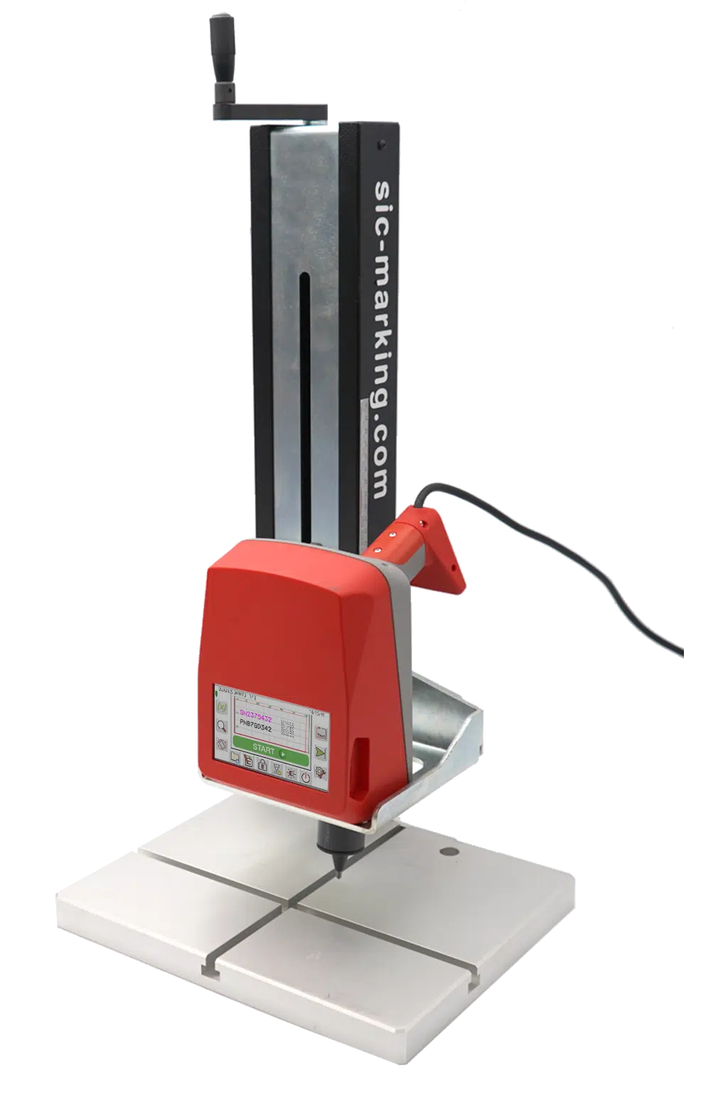 Dank Nadelmarkierungstechnologie und Hartmetall-Nadelspitze erzeugt die e-TOUCH EVO dauerhafte und permanente Markierungen von Texten, Logos und 2D-DataMatrix-Codes.