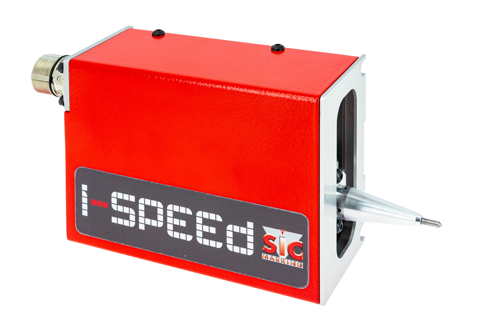 Der Nadelpräger i-SPEED ist perfekt für Produktionsanlagen mit sehr hohen Produktionstakten und erreicht eine Markiergeschwindigkeit von bis zu 10 Zeichen pro Sekunde.