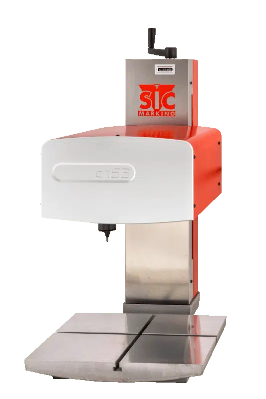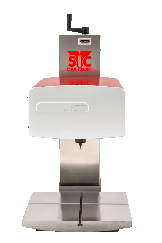 Das Markiergerät C153 ist ein STATIONÄRES NADELMARKIERSYSTEM auf einer MASCHINENSÄULE. Der MARKIERKOPF lässt sich entlang einer Achse verschieben, sodass unterschiedlich große Werkstücke bequem positioniert und präzise markiert werden können.